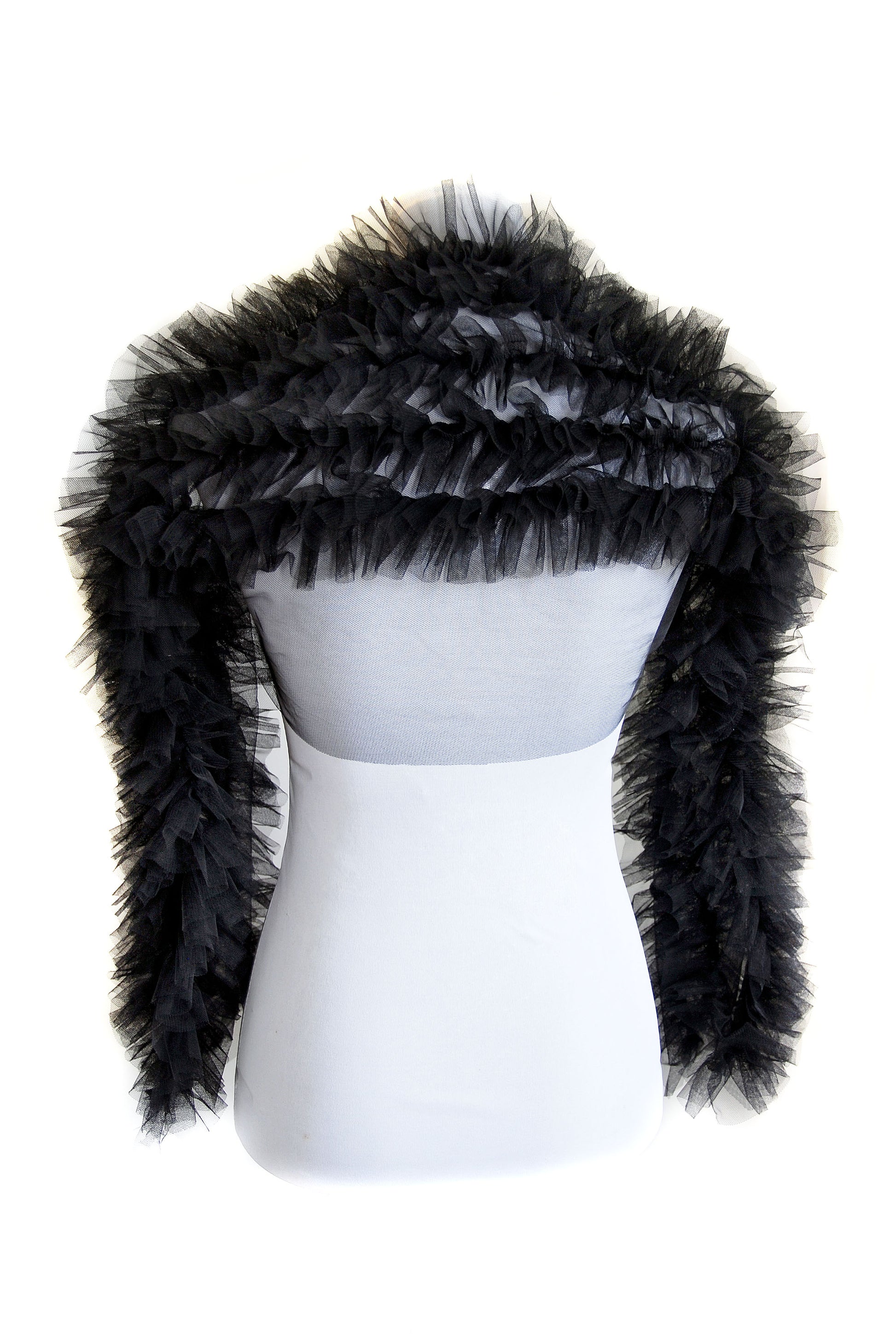 Dieser auffällige, geraffte Tüll Bolero verleiht jedem Outfit einen aufregenden Akzent und zieht alle Blicke auf sich. Für erotische Eleganz trägst du ihn am besten nur zu einem BH oder sogar ganz brustfrei. Perfekt, um bei Partys stilvoll zu glänzen und deinen individuellen Look zu betonen.