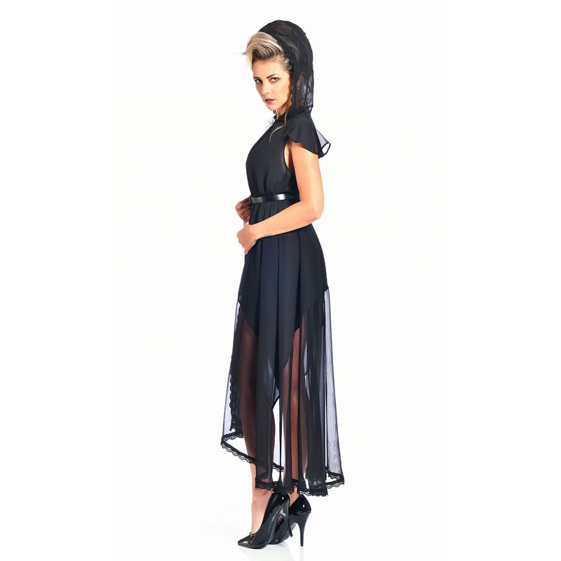 Gefertigt aus leicht fließendem Softtüll mit Kapuze. Oben blickdicht ab dem Knie und die Kapuze sind teiltransparent