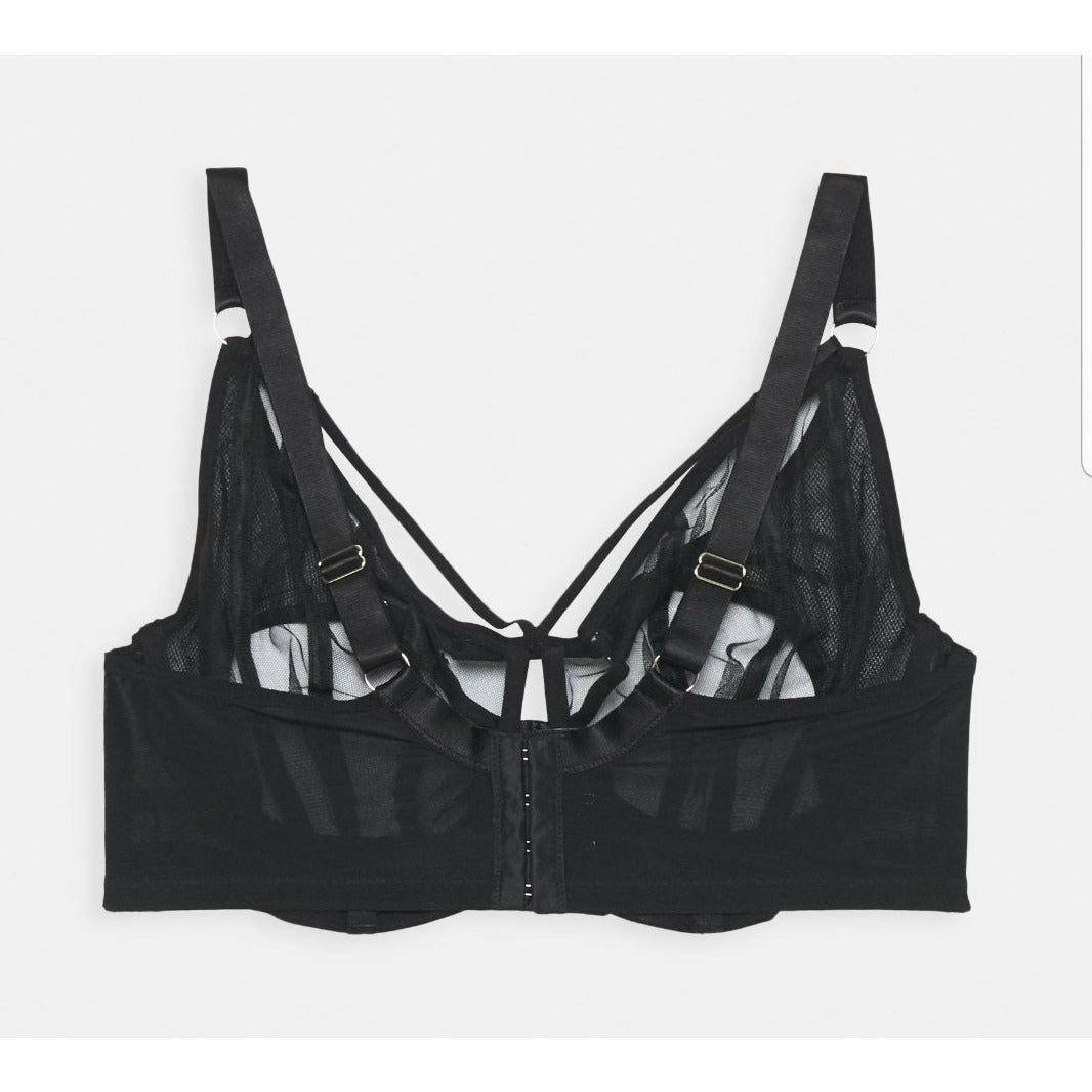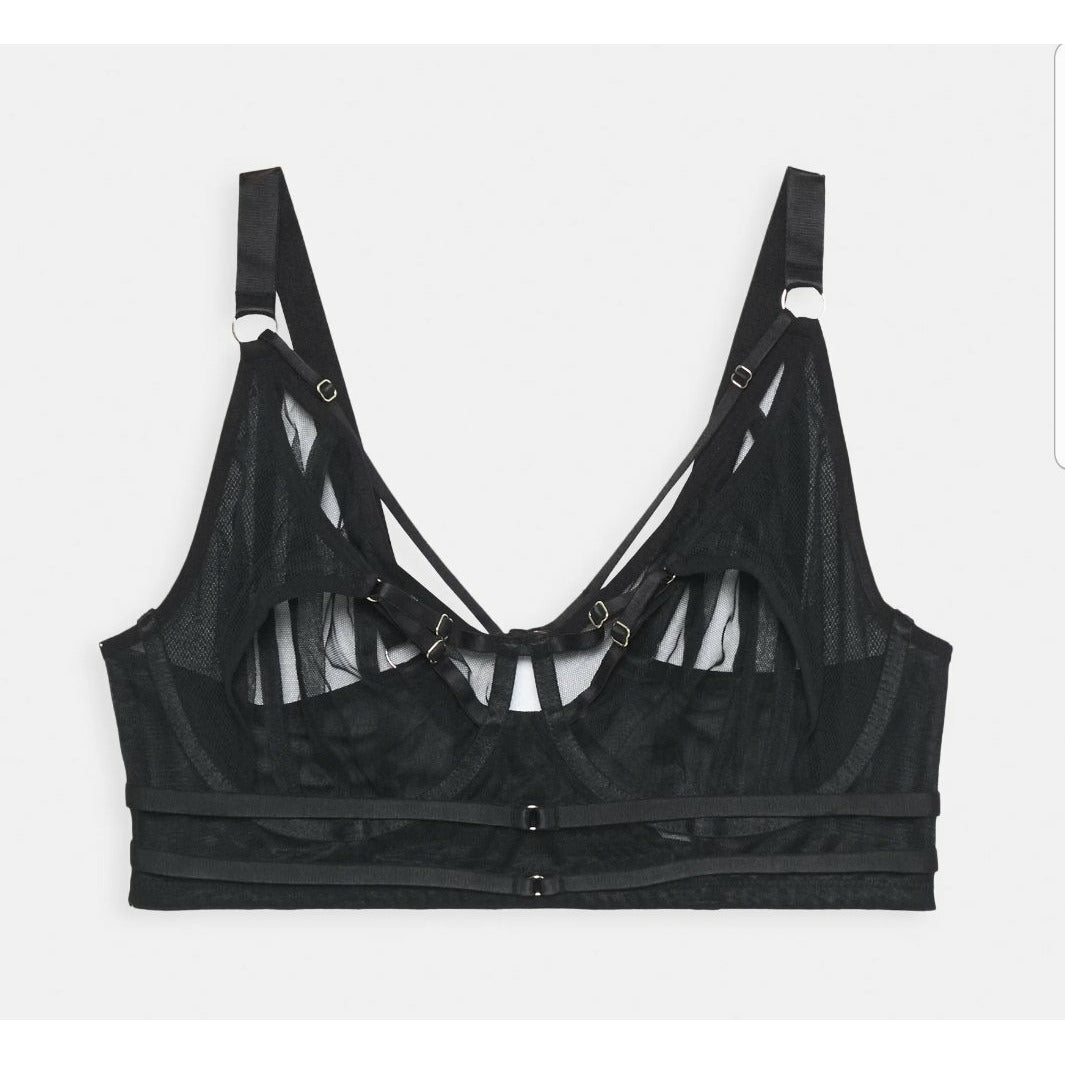 Transparenter schwarzer Bügel BH mit verstellbaren Bänder und natürlich längenverstellbaren dünnen Trägern.