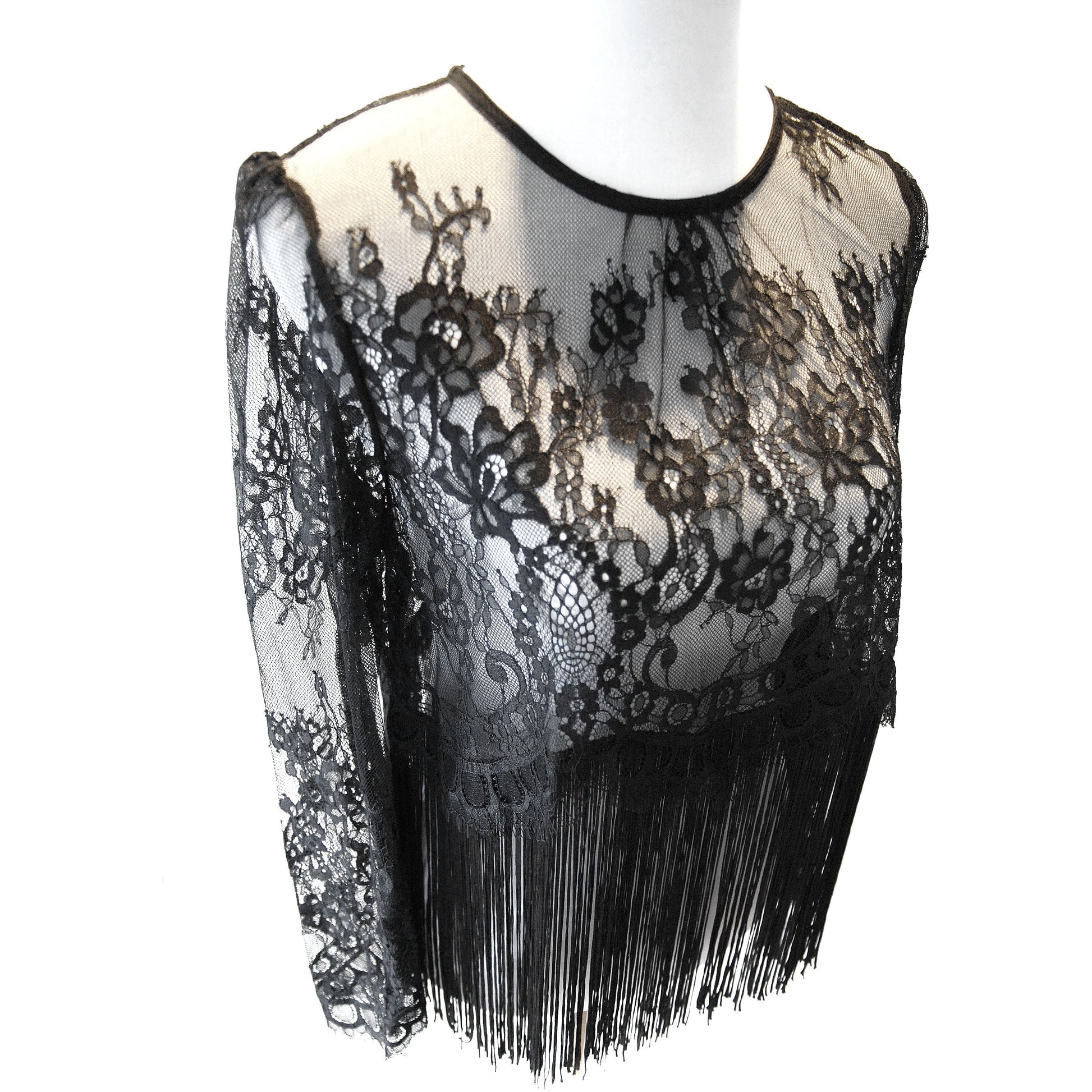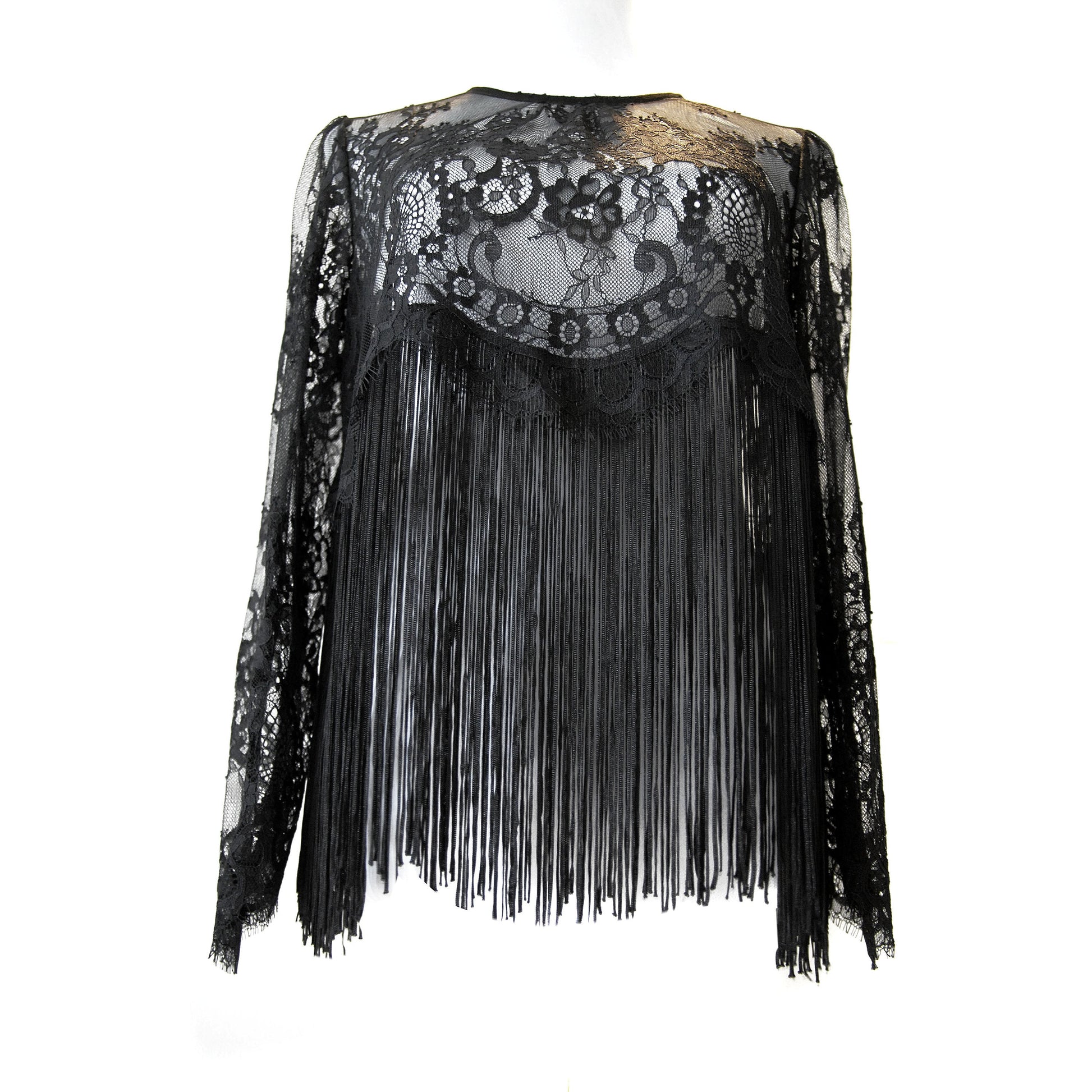 Ein Hingucker! Ein Shirt aus leichter Spitze in Kombination mit 30cm Fransen, die sanft die Taille umspielen. Ein edler Hauch von Nichts!