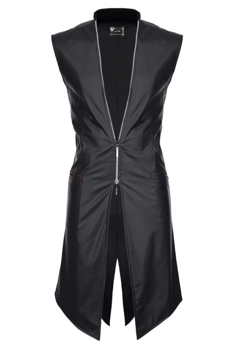 Diese Gehrock Weste aus Wetlook ist ein muss für jeden Kleiderschrank. Der kleine Stehkragen und der silberne Reißverschluss verleihen dem Gehrock einen eleganten Look. Die 2 Paspeltaschen vorne bieten Platz für kleine Gegenstände und der kleine Schlitz hinten sorgt für Bewegungsfreiheit. Perfekt für einen professionellen Look.